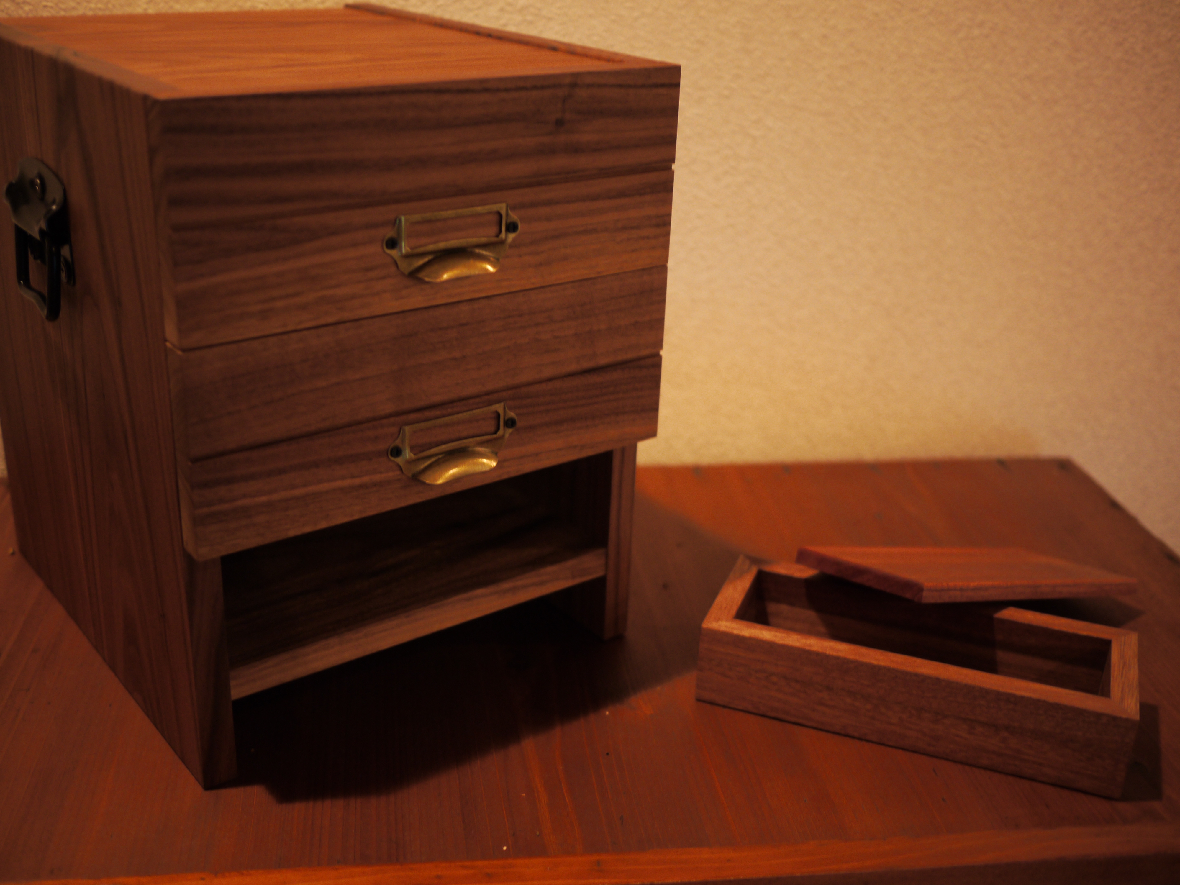 ウォールナット無垢材、桐材、※小箱はラワン材、チーク突き板