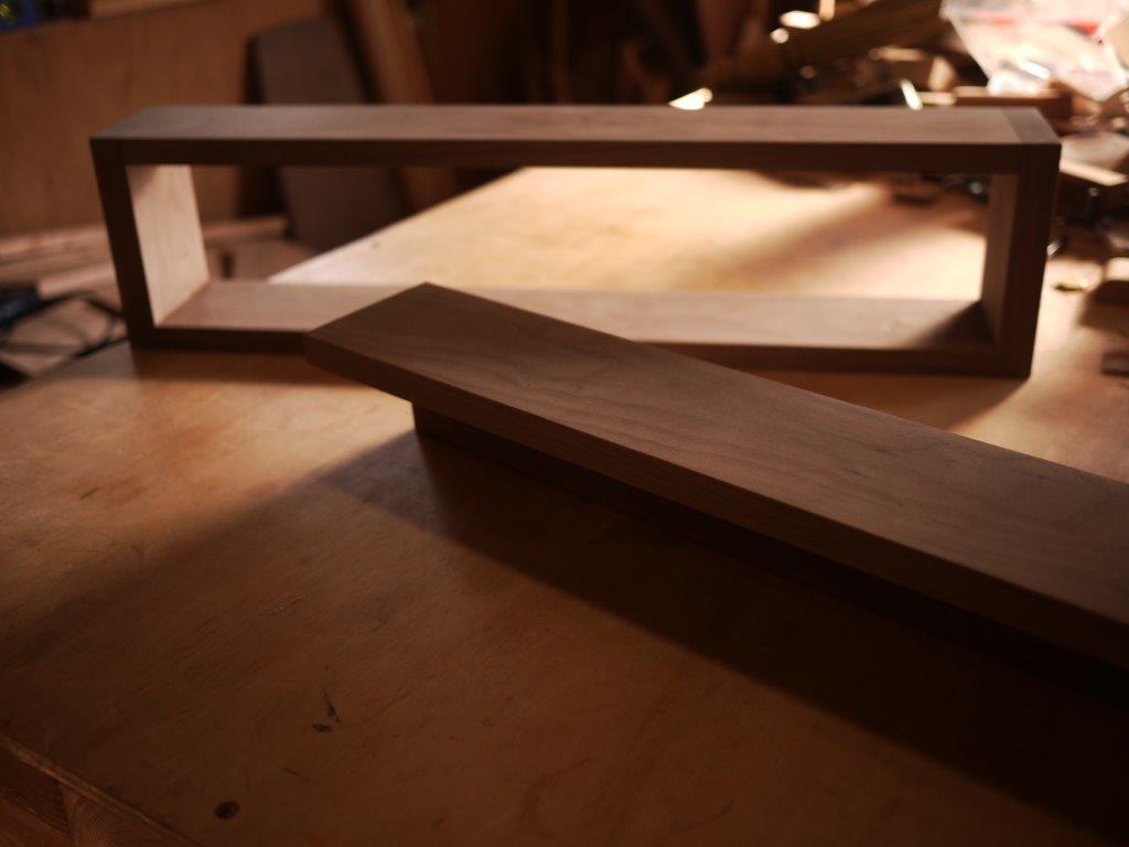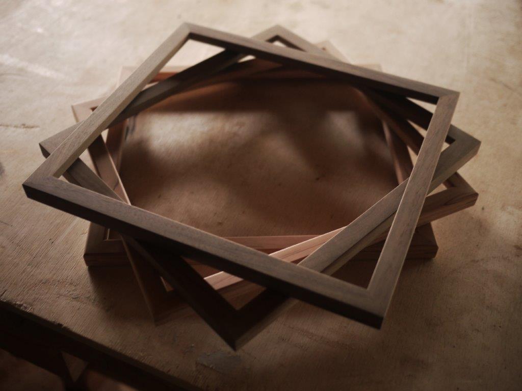 ブラックチェリー無垢材、アクリル板、額装マット、合板、オイルフィニッシュ(OSMO NA-6)